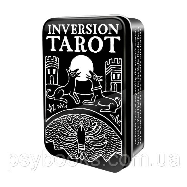 Перевернутое Таро (Inversion Tarot) основано и вдохновлено работами, изначально созданными в 1960 году Полом Мэтисоном для Таро Ролла Нордик. Эта колода следует древней марсельской традиции Таро. Обновленные изображения были перевернуты и усовершенствованы интересными новыми деталями и декоративными элементами, поставленными в центр внимания в этой яркой, современной колоде. Карманная колода включает 78 черно-белых карточек и 64-страничный буклет в удобной банке. Буклет содержит инструкции для двух спредов таро.